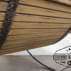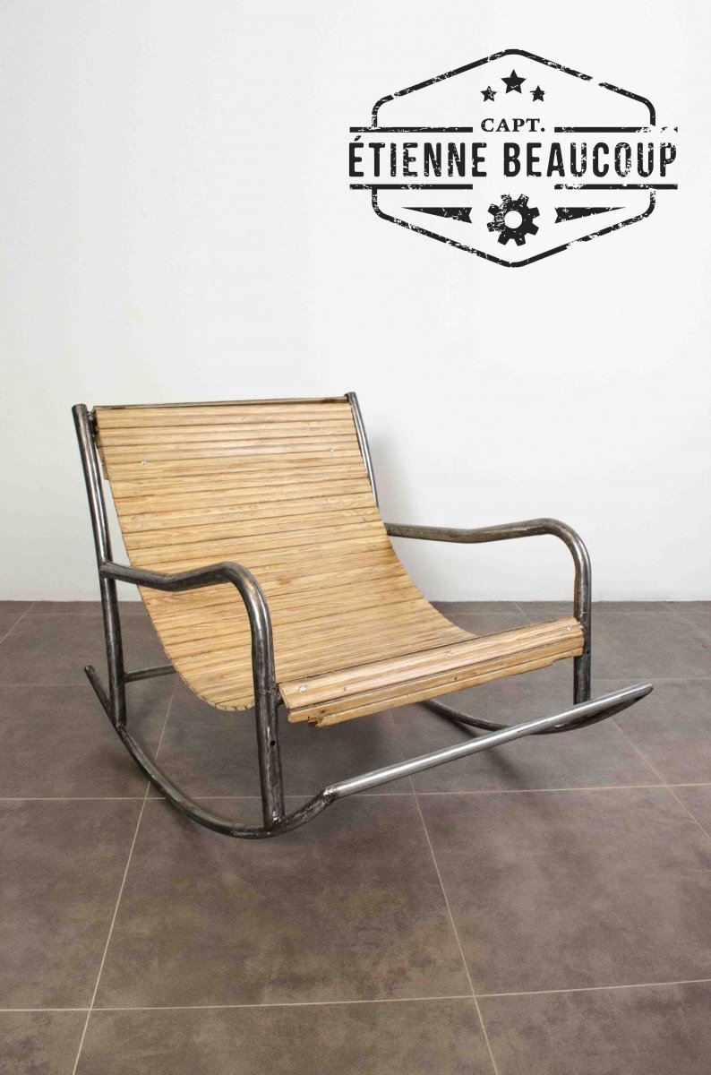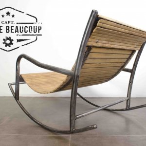 This upcycled rocking chair is created from an old trampoline and a few plumbingpipes. the seat is an old wooden rolling shutter. I will modify the hanging it in the near future with belts of a rollingshutter so that the seat is firm, more stable and can carry more weight
