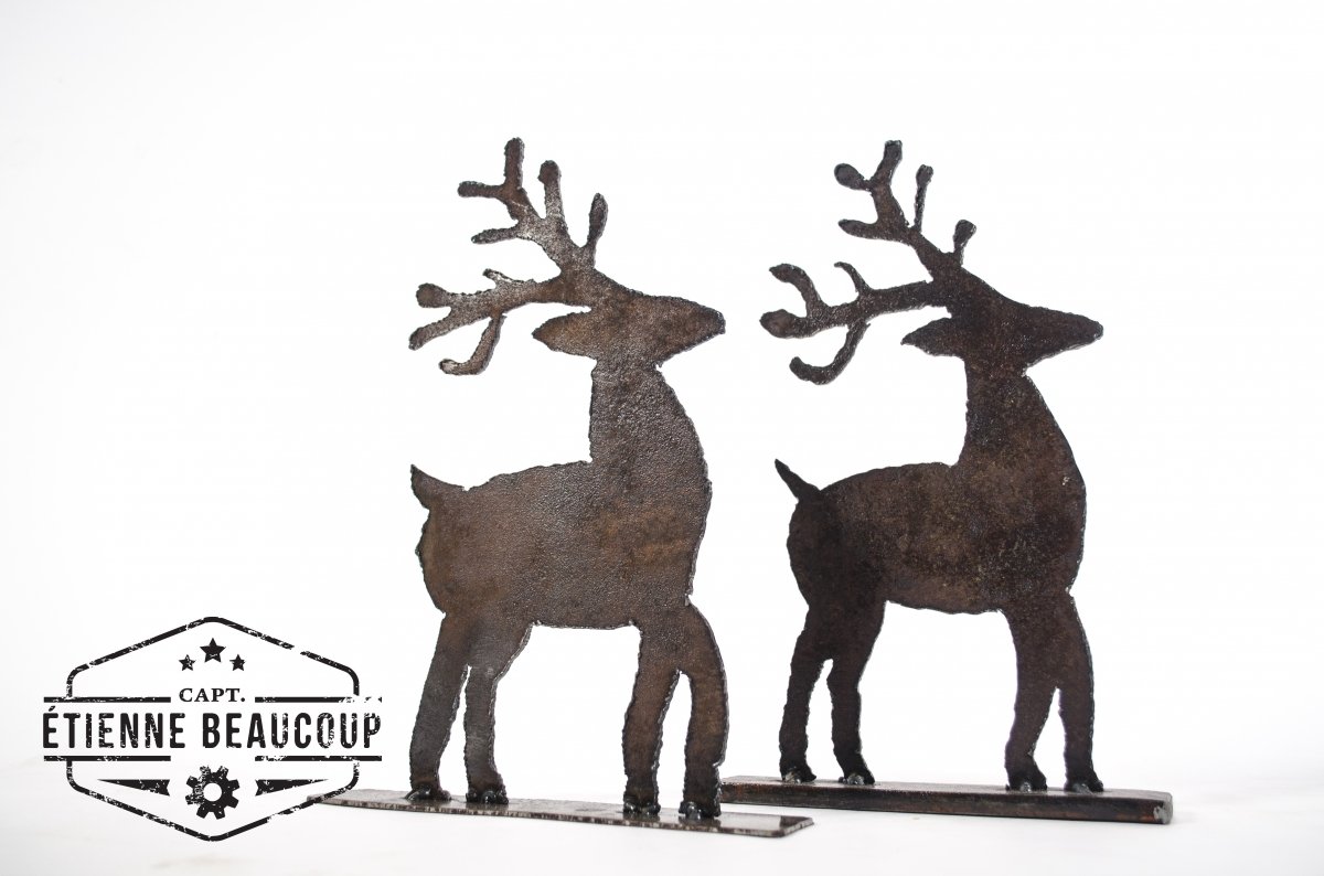 This decorative element was made especially for the Christmas period. The reindeer was cut by hand. All material is recuperation waste metal.