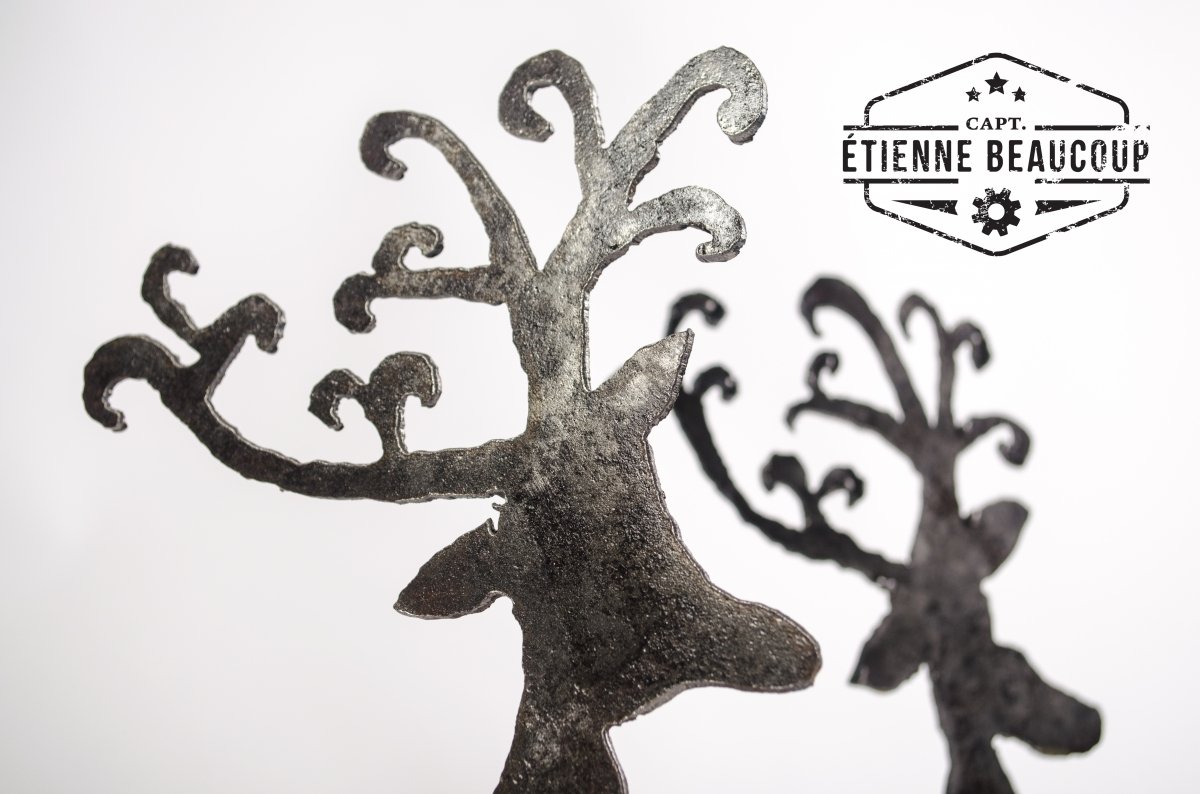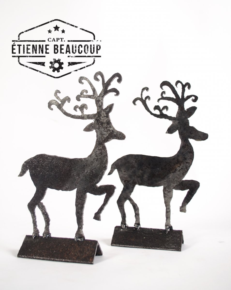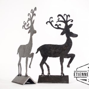 2 reindeer cut by hand with the plasma cutter from an old metal plate.