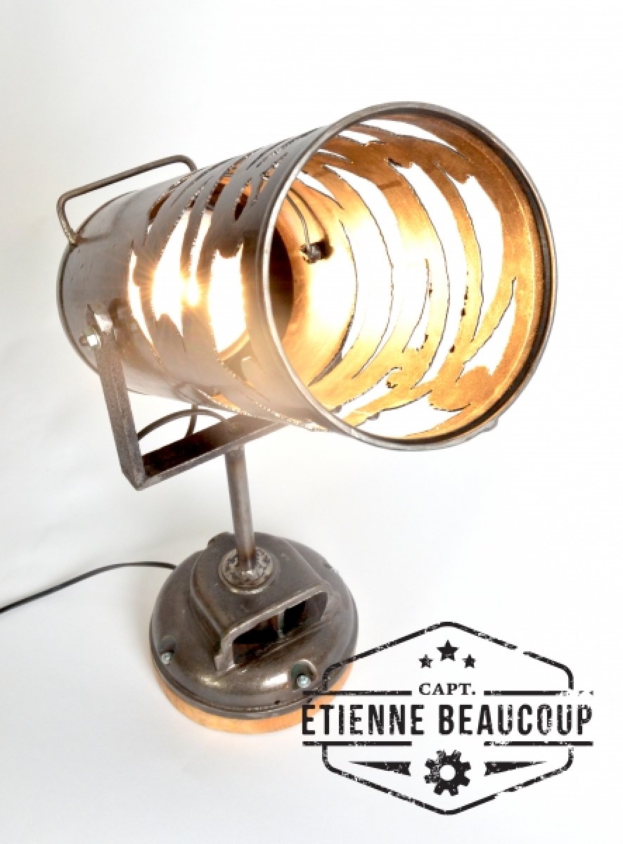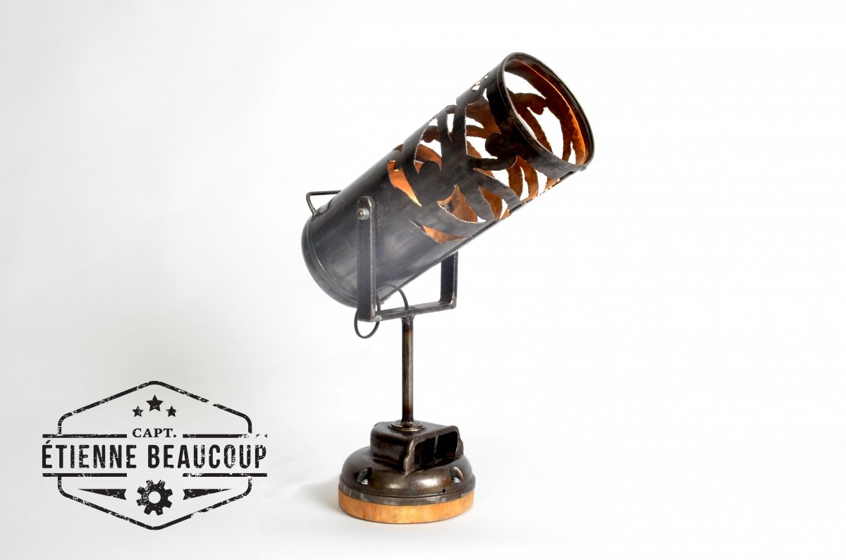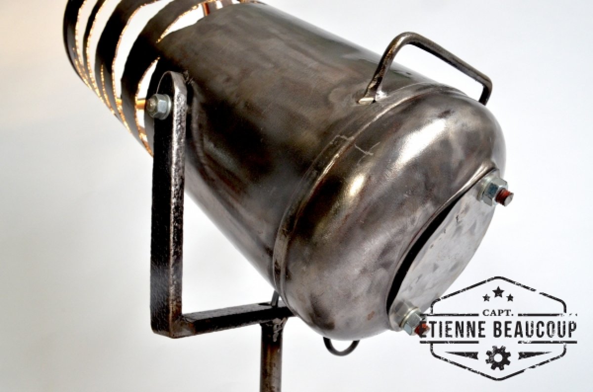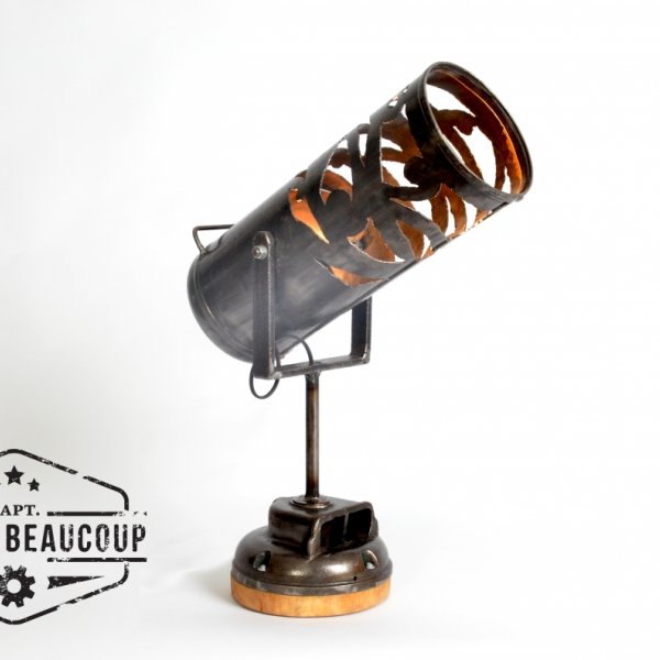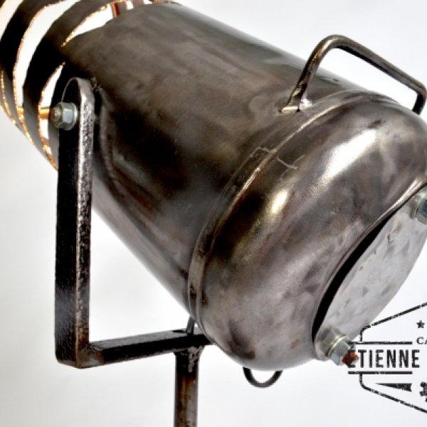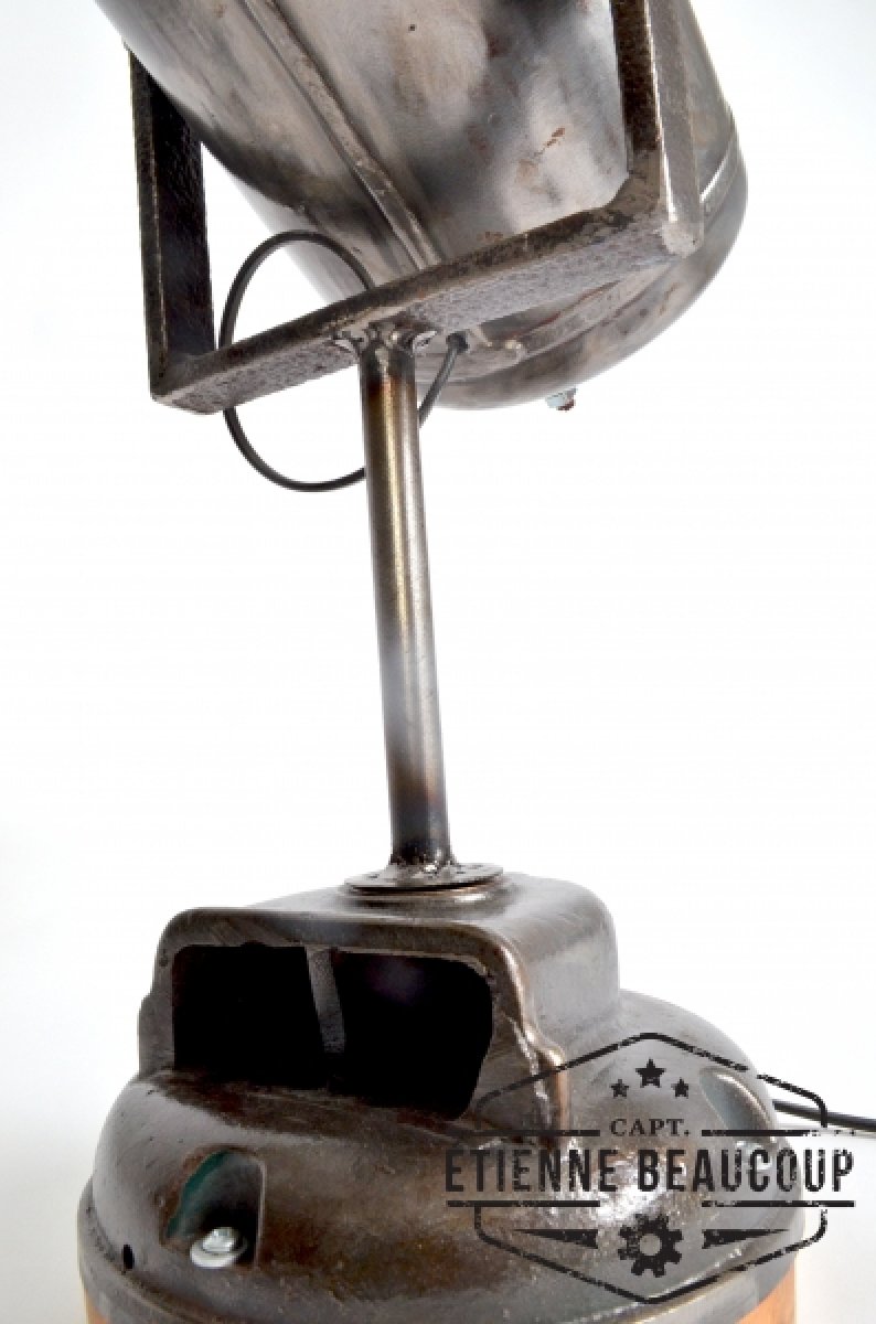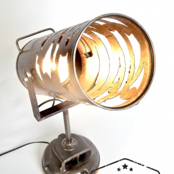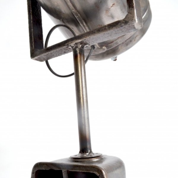 This lamp is made out of an old fire extinguisher and the base is an old part of a electromotor.