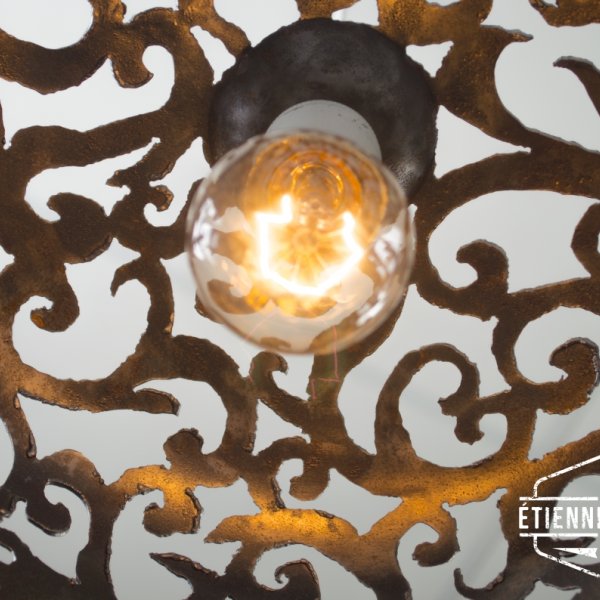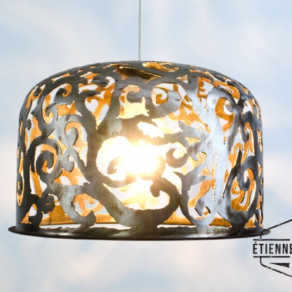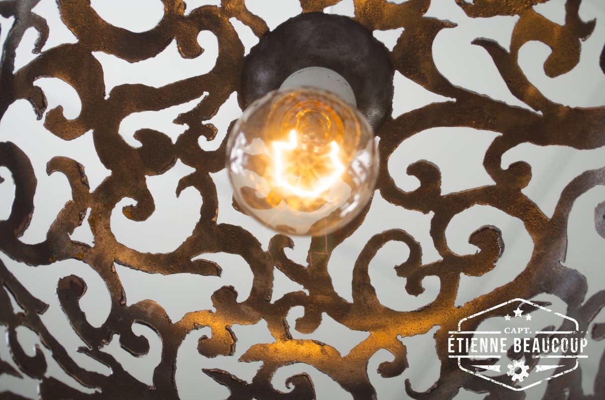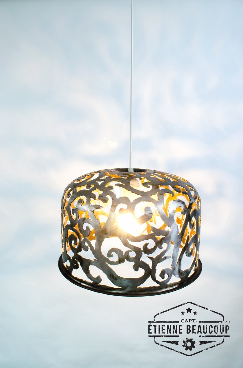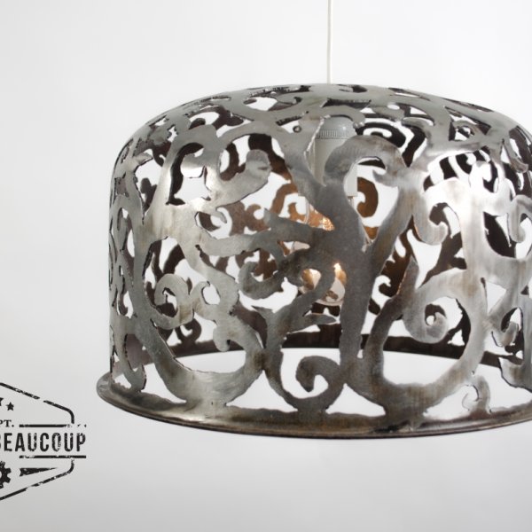 Pendant light from an old expansion vessel of a heating system. Cut by hand with the plasma cutter.