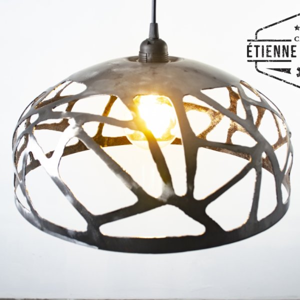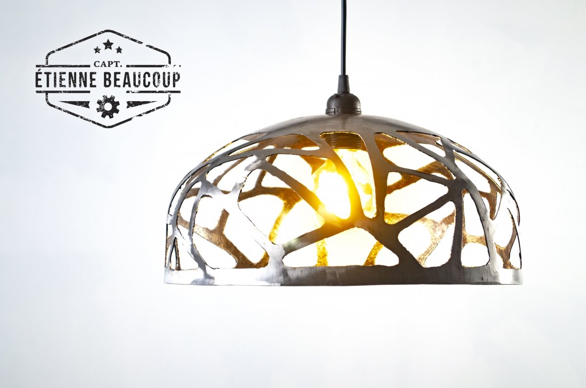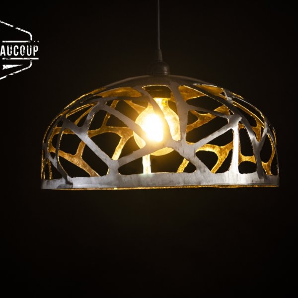 Pendant lamp out an expansion tank. The damask motif was drawn and cut by hand