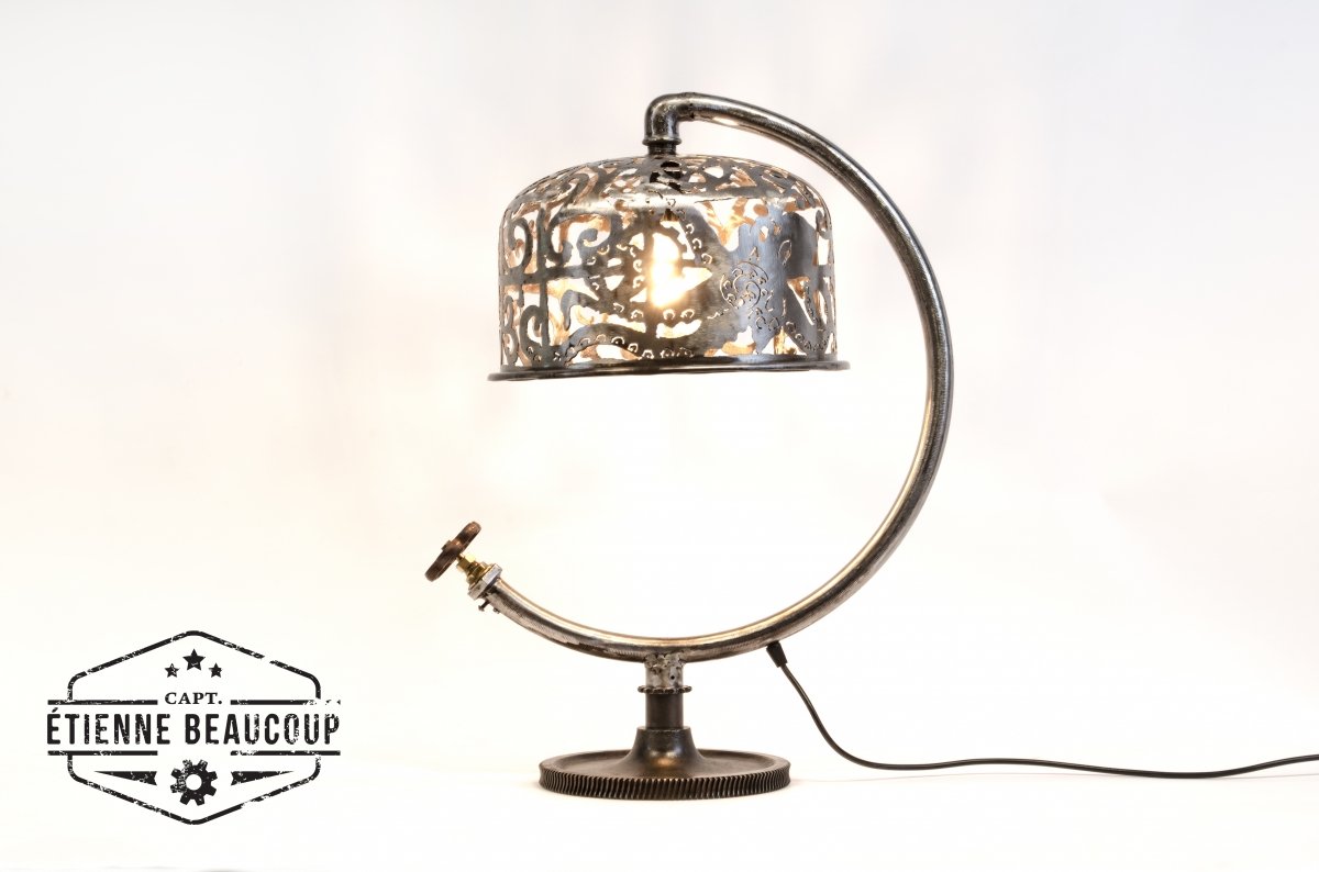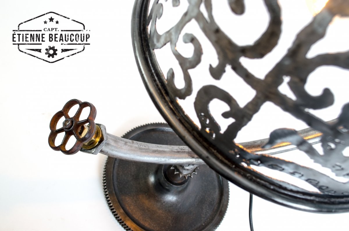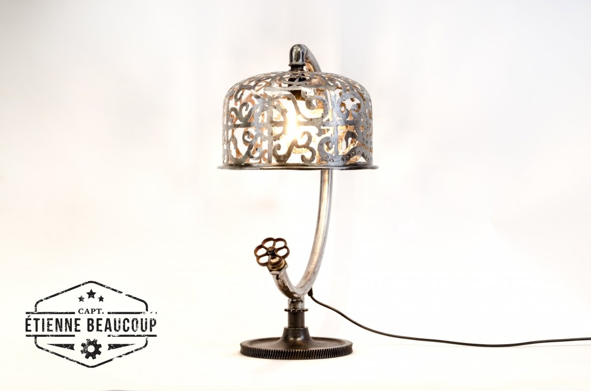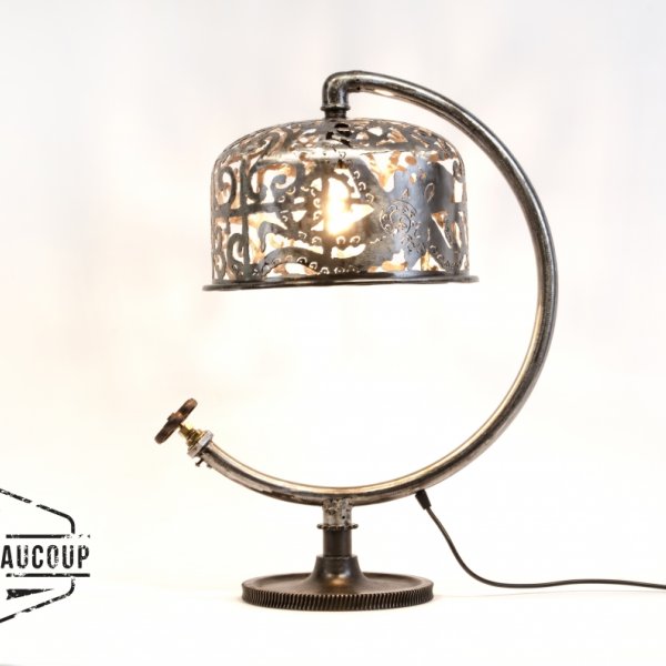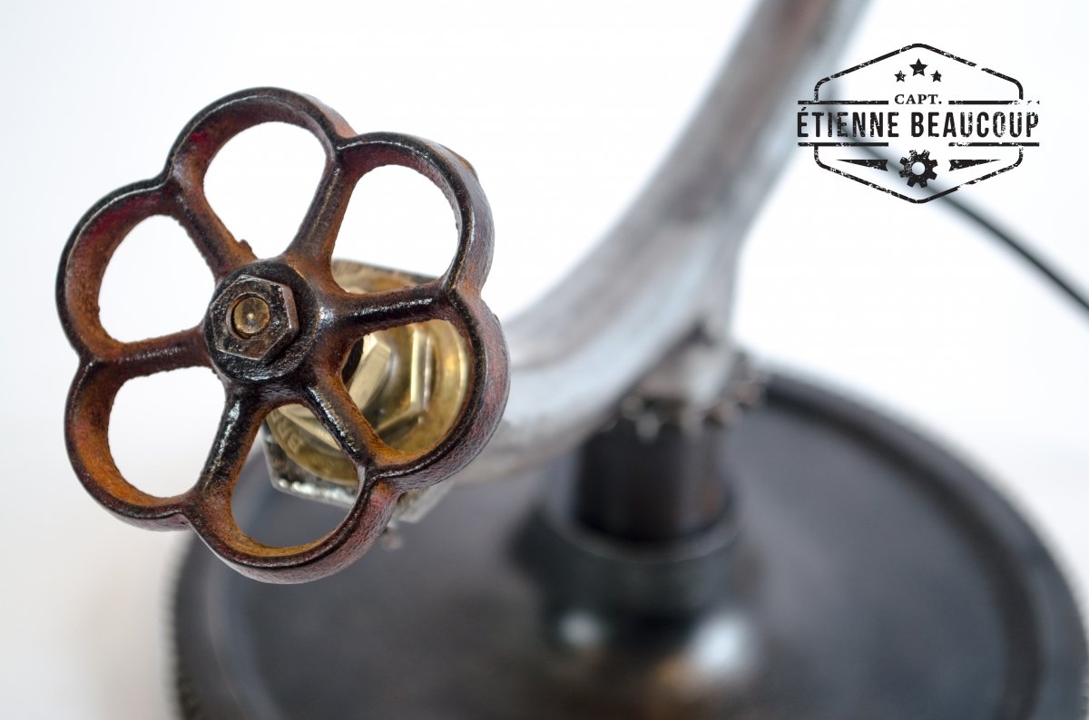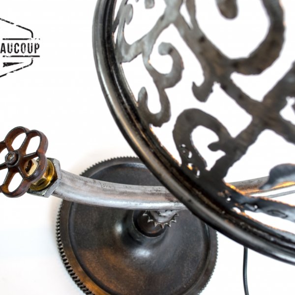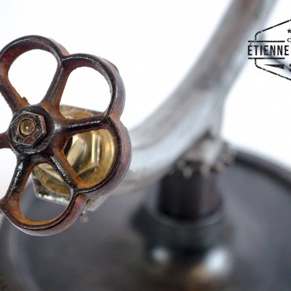 This new atmospheric lamp is made from an old curved heating tube and half of an old expansion tank. The water tap has been converted into a switch.