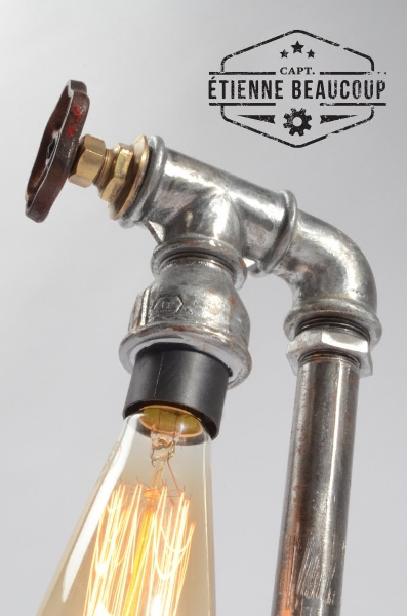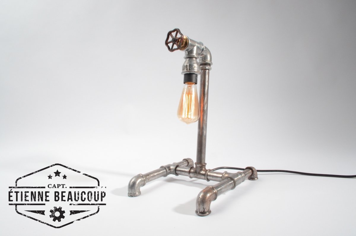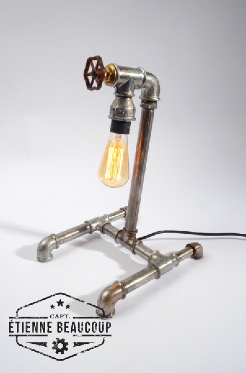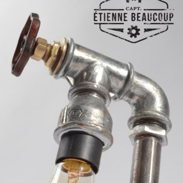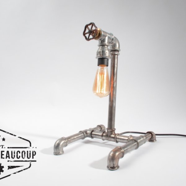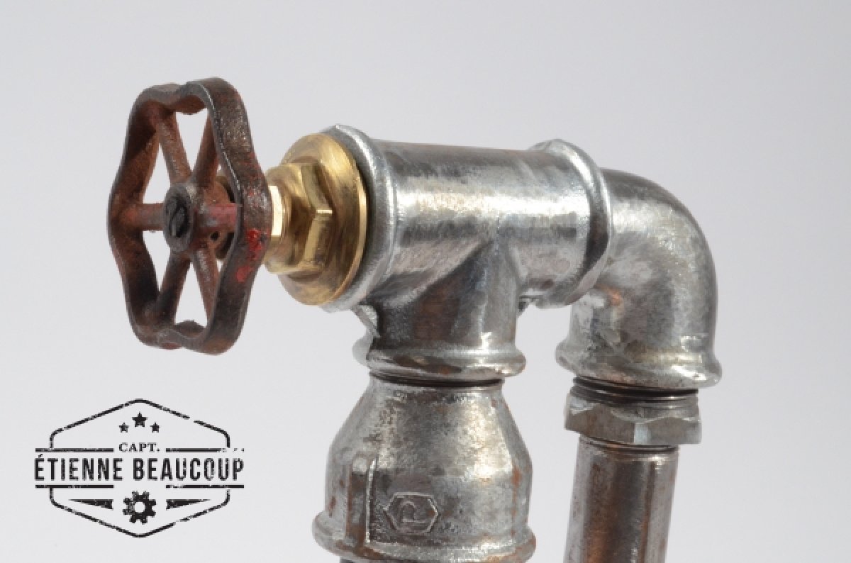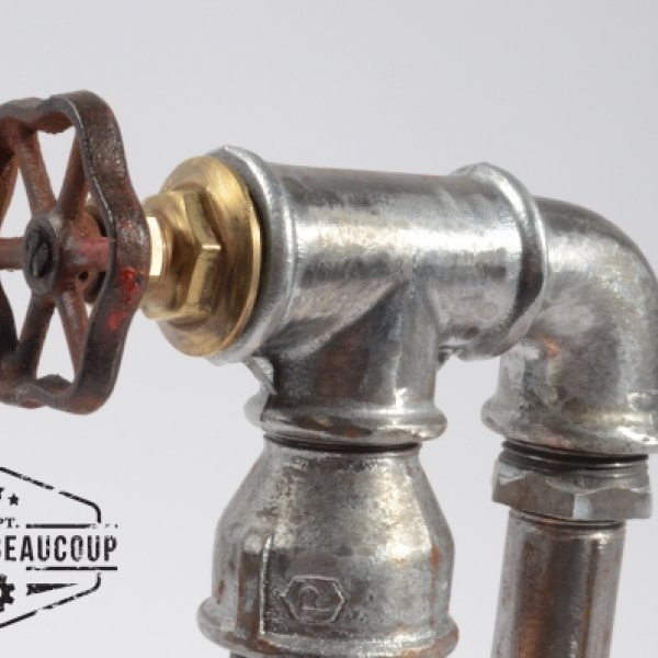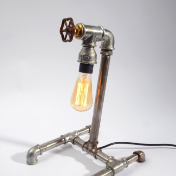 Table lamp out of old plumbing pipes with a rotay switch in side the valve.