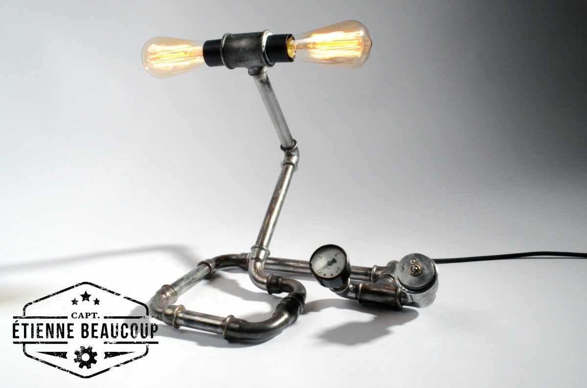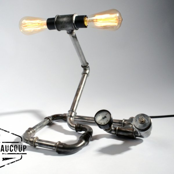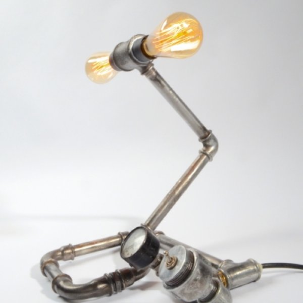 Table lamp out of old plumbing pipes. With edison lightbulbes. #industrial #dieselpunk