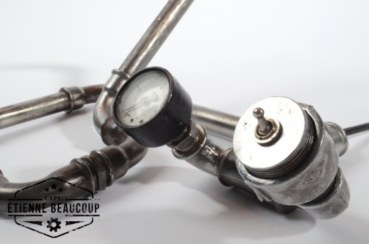 Hanglamp uit een expansievat met een dieselpunk thema.