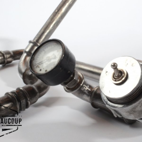 Retrofuturistische vloerlamp uit oude verwarmingsbuizen.