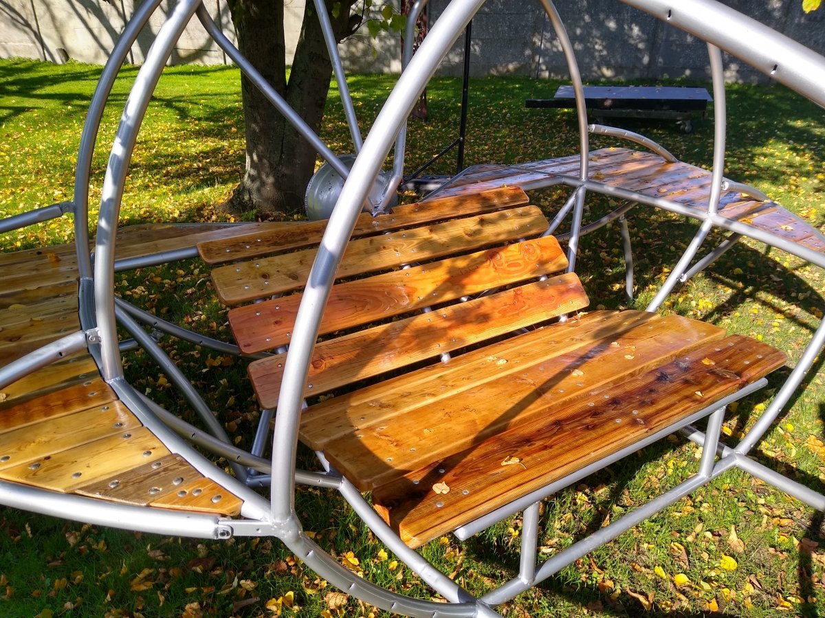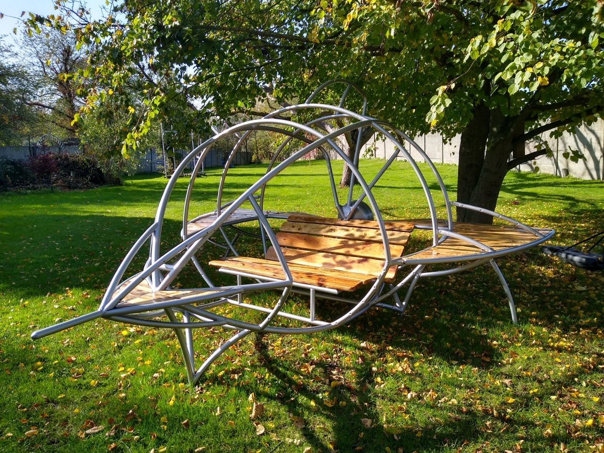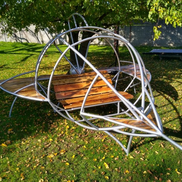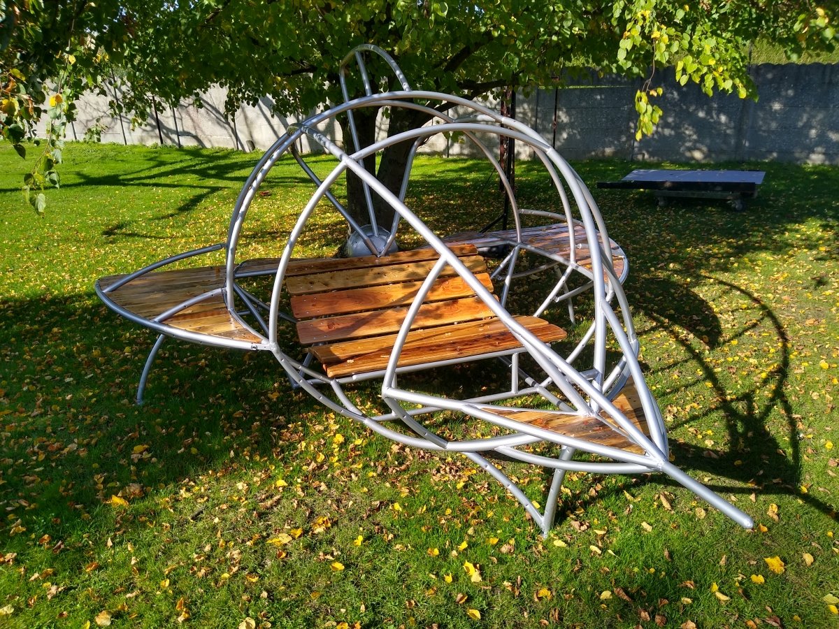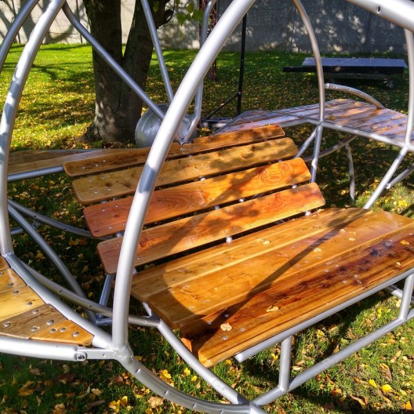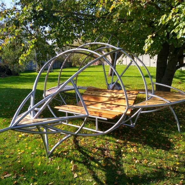 Het metaalwerk in dit kunstwerk bestaat geheel uit gerecycleerde trampolines. Het houtwerk bestaat vooral uit gerecycleerde palletten. De zitbank is van overschotten van een dakgebinte en hergebruikte balken.